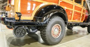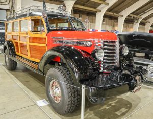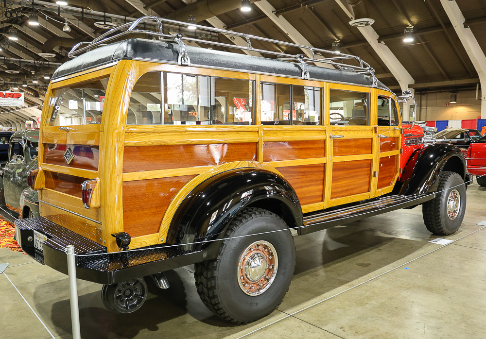 Building 4 of the Fairplex was full of exceptional trucks of every variety. One such vehicle was this 1946 Diamond T built by Tom Phillippbar of San Clemente, CA. This vehicle is very likely the only woodie Diamond T in existence. Only three prototype woodies were built by the factory; two were burned in fires and whereabouts of the last vehicle is unknown. Tom found this Diamond T logging truck, built a woodie body and grafted it onto a Dodge diesel truck frame. He also added drop-down steel wheels to allow the truck to run on railroad tracks. Tom did all of the work on this vehicle including the wood and metal work which took him 5 years working week-ends.
