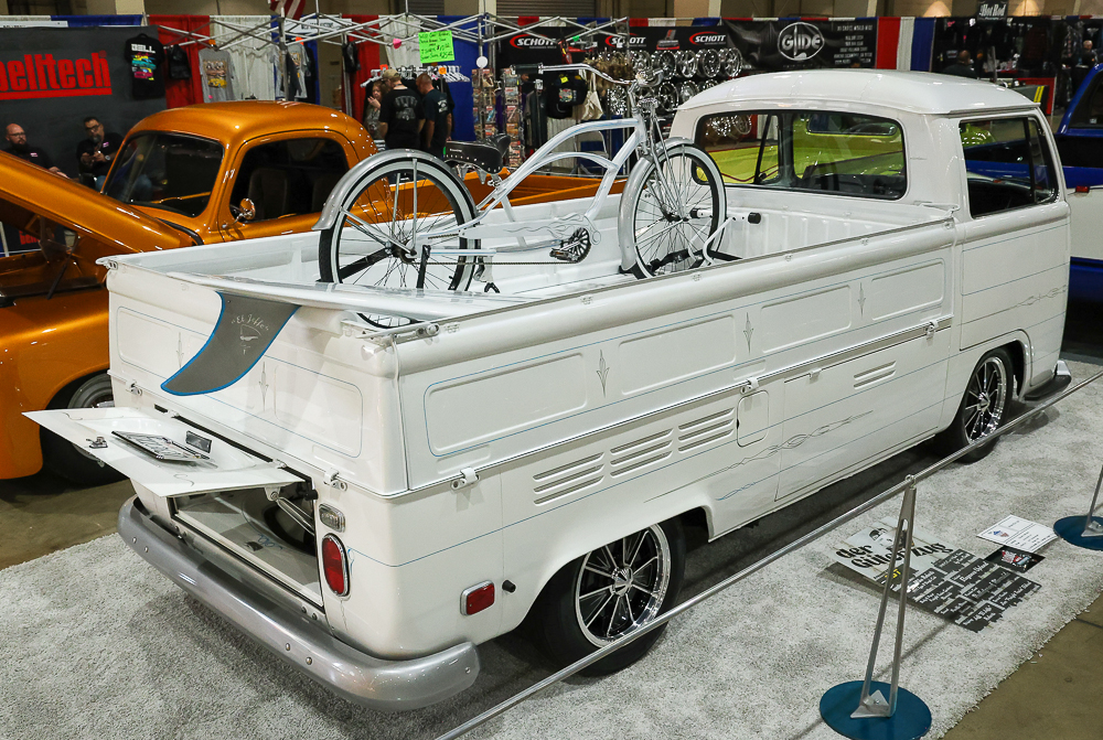 In addition to trucks, Building 4 was also home to a number of pinstripers working hard throughout the show creating some beautiful artwork which was auctioned off. Auction proceeds went to the Volunteers for Veterans Foundation.